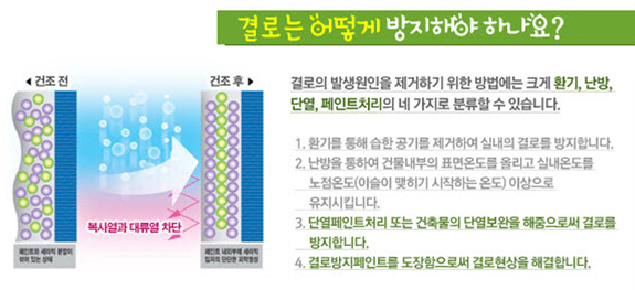 1. 결로를 막아 습한 환경을 없애 곰팡이 발생을 방지.