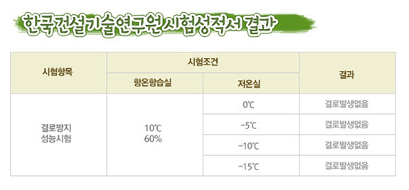 2. 결로가 생기더라도 항균처리를 하여 곰팡이 발생을 방지.