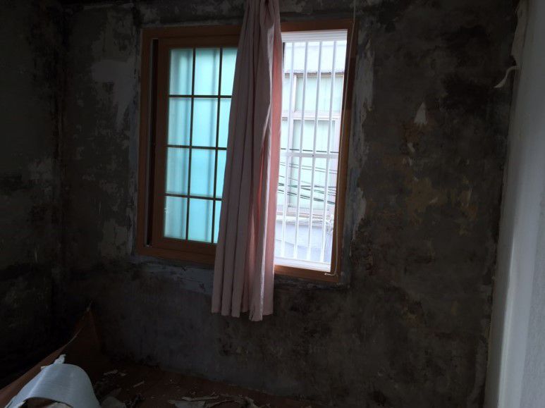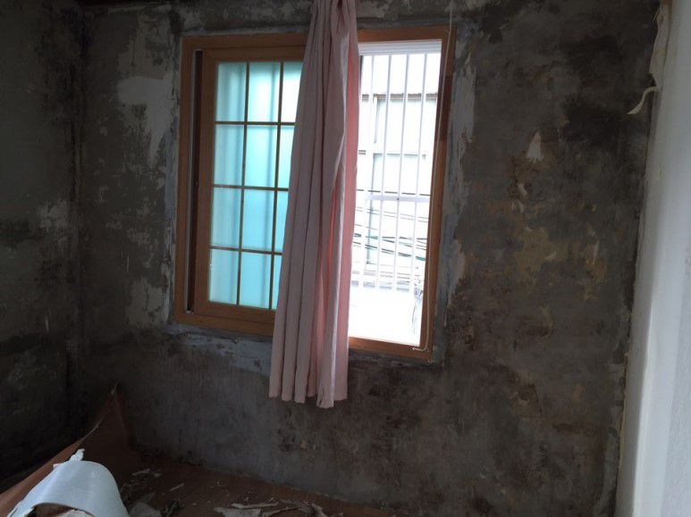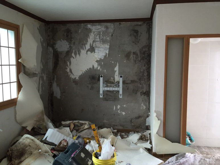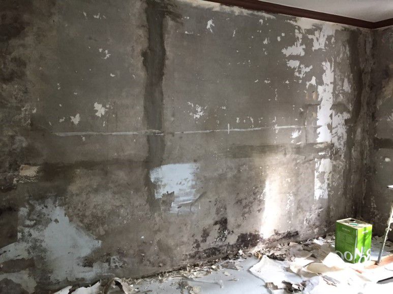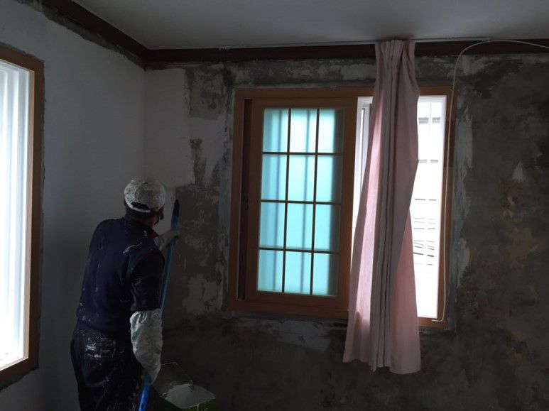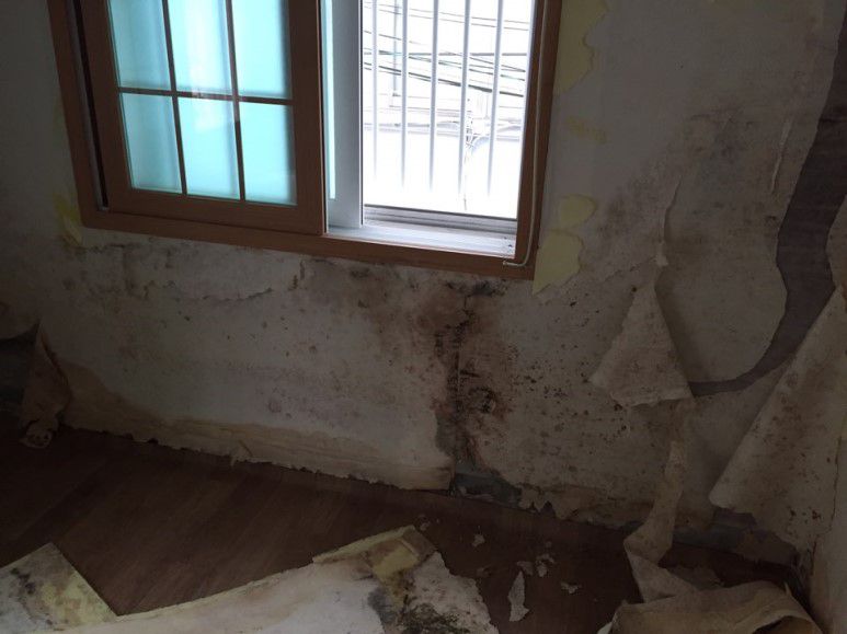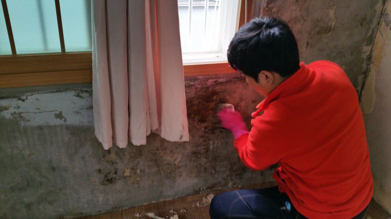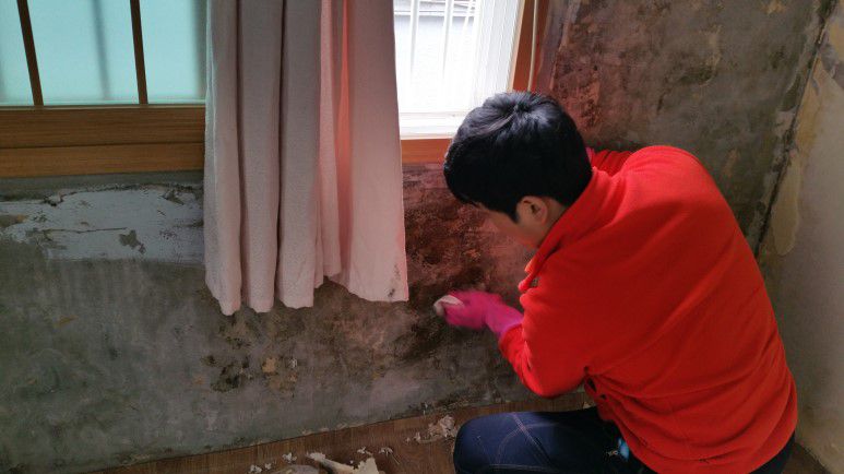 시공 전 기존 발생되어 있는 곰팡이를 제거하는 작업을 합니다.