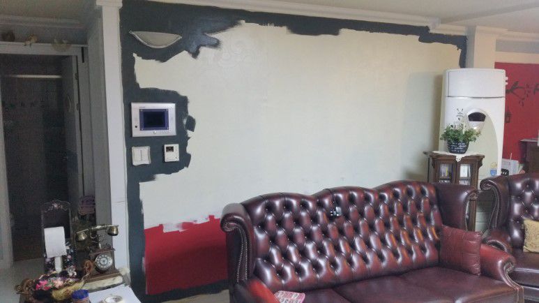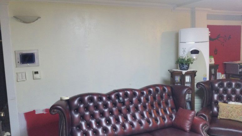 쇼파뒤에는 쇼파에 가려서 보이지 않는다고 페인트를 누락한 부분이 보입니다.