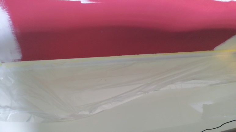 원래 있던 도배지 위에 그동안 빨간색>화이트크림 을 칠해 왔었습니다.