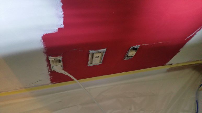 벽에 붙은 기기들은 옆면을 먼저 마스킹으로 잘 감싸 줍니다. 마스킹 기술이 거의 페인트 수준을 결정하죠...