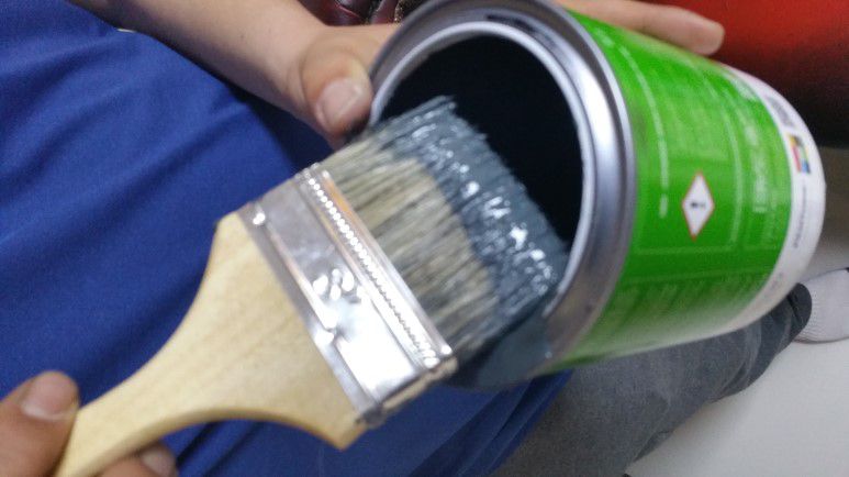 붓은 항상 1/3만 페인트를 묻혀야 손잡이를 타고 흘러 내리는 것을 방지 할 수 있습니다. "조금씩 자주~"