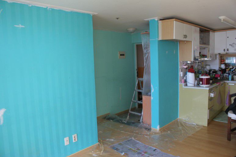 가구는 중앙부분으로 밀어 놓습니다. 이 때 사람이 들어가서 작업할 공간 정도만 확보하면 충분합니다.