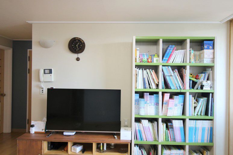 책꽂이와 가구들로 인해 조금 산만한 느낌이 들죠?
