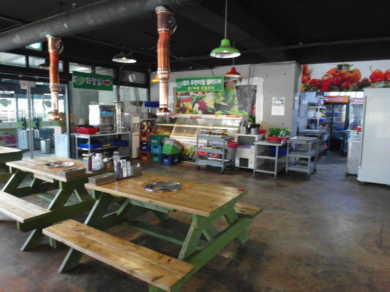 최근 유행하는 식당으로는 캠핑을 주제로 한 야외 캠프형 고기집이 있습니다.