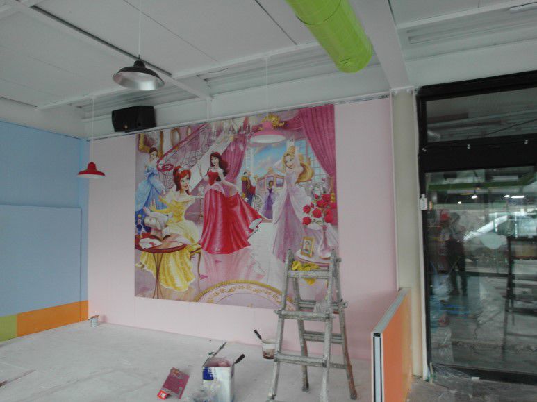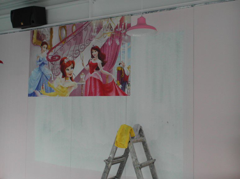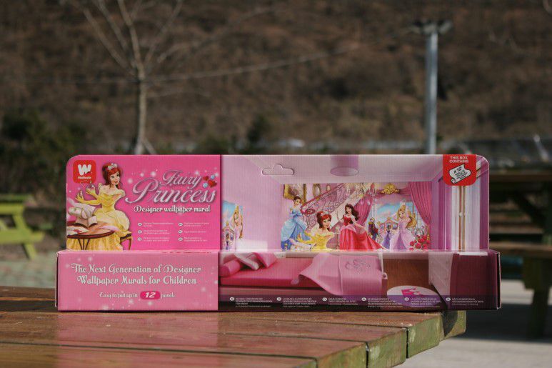 먼저 뮤럴 벽지를 붙이겠습니다.