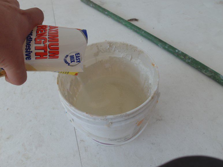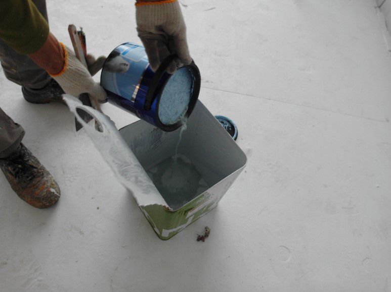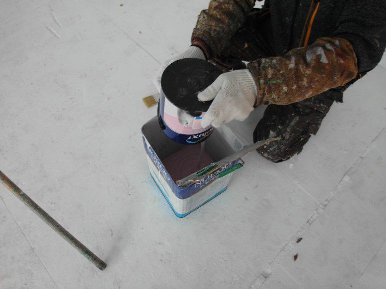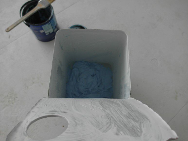 완전한 믹스를 위하여 기존 통에서 페인트가 남지 않도록 완전히 부어 줍니다.