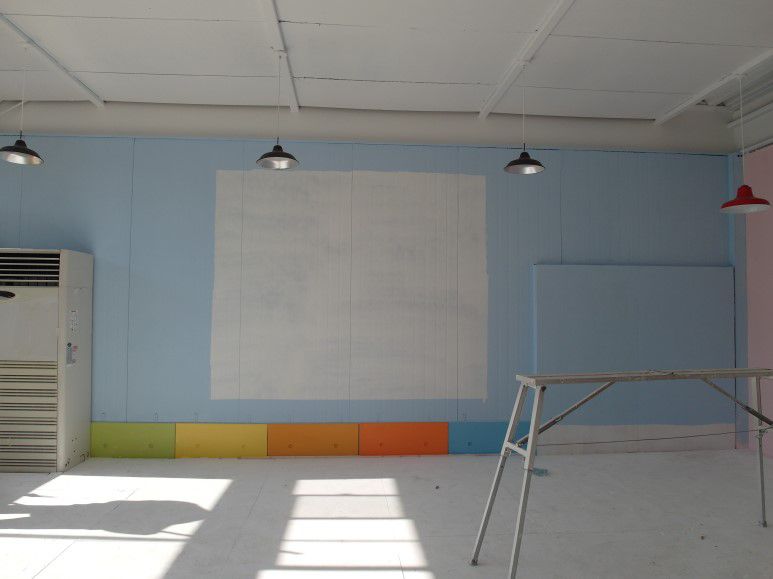 가운데 흰색 화면처럼 보이는 곳이 뮤럴벽지가 붙을 자리 입니다.