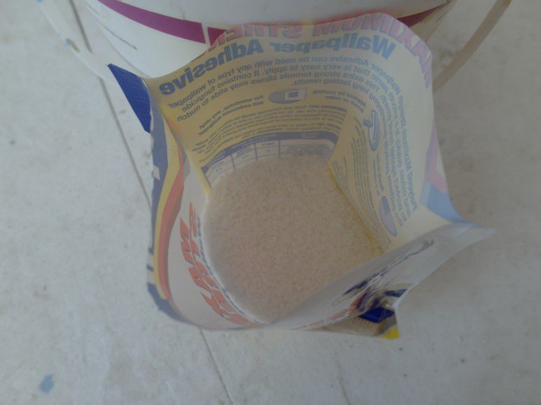 물을 약2리터 준비합니다. 풀을 개봉하면 흰색 굵은 분말로 되어 있습니다.