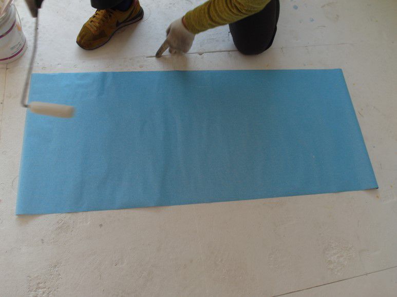 롤러나 붓으로 풀을 듬뿍 바릅니다.