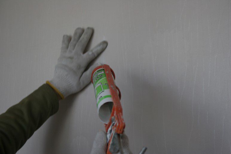 못자국, 벽지가 찢어진 곳, 떨어진 곳 등은 이렇게 수용성실리콘을 이용해서 메꿔주시고