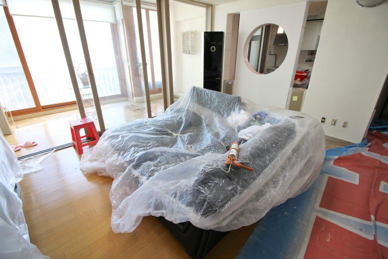 소파와 같은 큰 물건은 거실 가운데로 몰아 넣고 자동차용 "카커버"를 덮으시면 편리하죠.